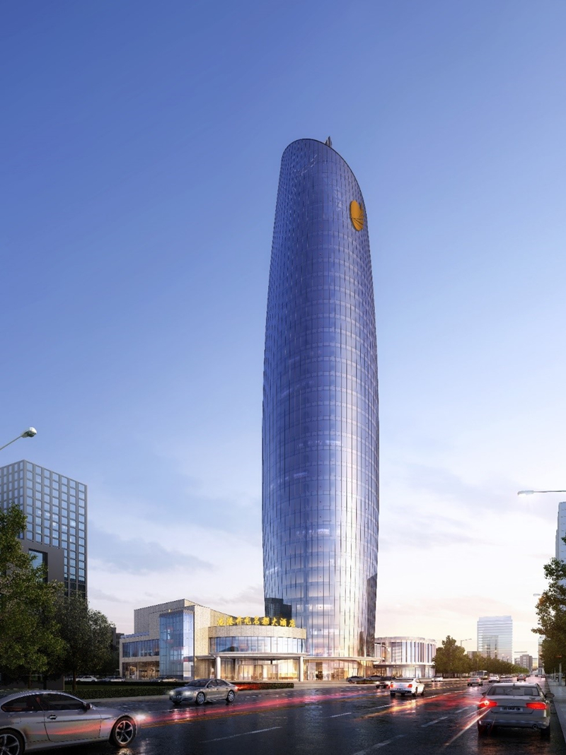 中國電建大灣區科創中心基地位于廣東省廣州市花都區,是由中電建(廣州)城市投資發展有限公司投資開發建設。該項目幕墻形式主要包括玻璃幕墻、鋁板幕墻等,總建筑面積約為62000平方米,幕墻面積38000平方米,建筑高度為162 1米。該項目是一棟超高層辦公樓,建成后將打造成為具備總部基地的地標性建筑。??跒I海新天地商業綜合體 位于海南省??谑校怯?